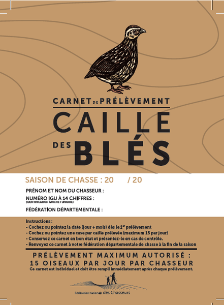 Comme vous le savez et s’agissant de la caille des blés, le prélèvement maximal autorisé (PMA) sera fixé à 15 individus par jour et par chasseur sur l’ensemble du territoire métropolitain pour son ouverture à partir du 7 septembre prochain.