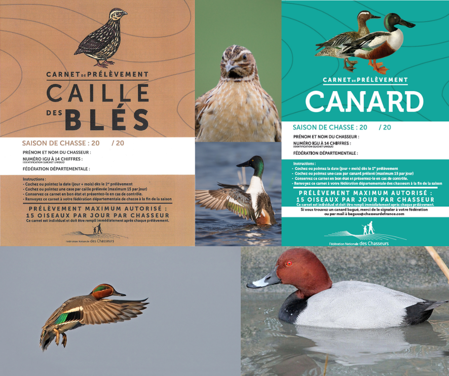 (*) Pour la saison de chasse 2025/2026, le fuligule milouin (Aythya ferina) fait l'objet d'un plafond de prélèvement national fixé par arrêté du ministre chargé de la chasse, sur proposition du comité d’experts sur la gestion adaptative (CEGA). La chasse de cette espèce ne peut ouvrir qu’à compter de la publication de l’arrêté fixant le plafond.